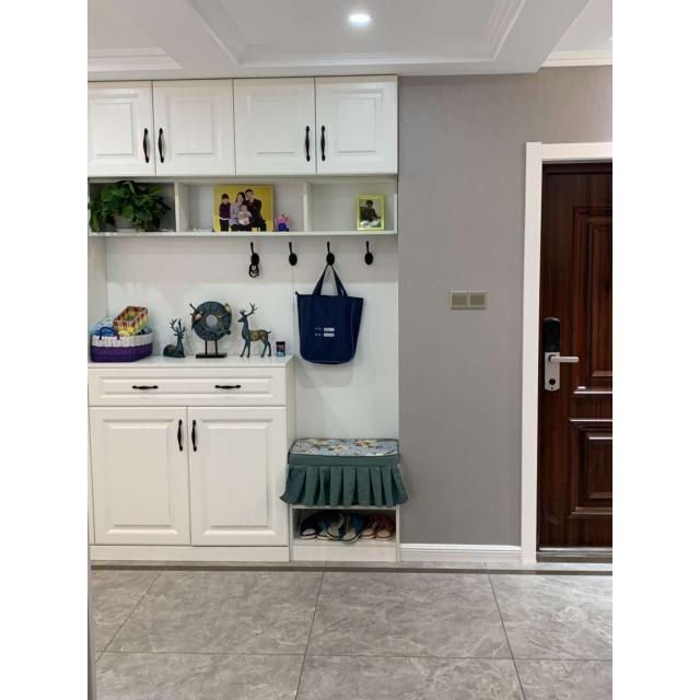 這是入戶門的鞋柜,鞋柜都是老公一手打造的,老公做木工這么多年了,手藝是非常不錯的,我們家的房子裝修好之后,很多鄰居多過來看過家里的房子,都讓老公幫忙過去給他們家也去做柜子。設(shè)計我老公和家里人商量了之后才做的。很實用,也很美觀。