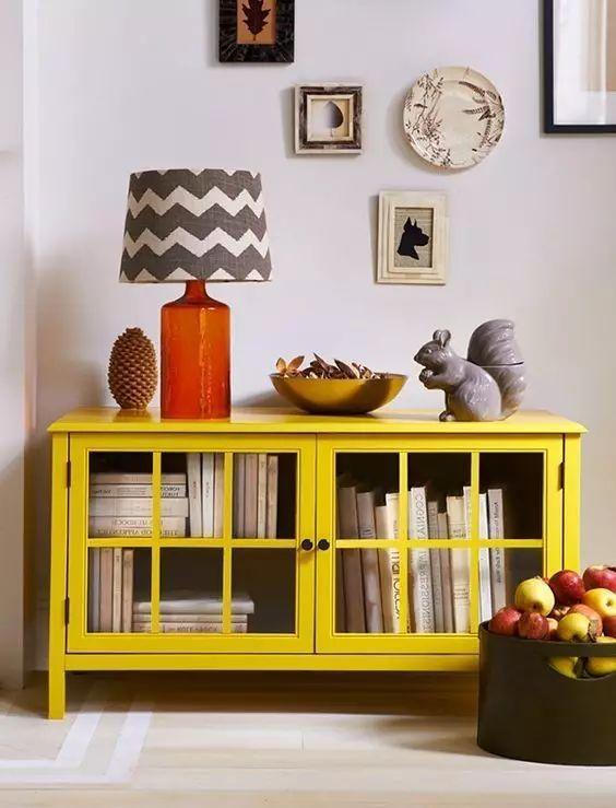 黃色的加持在方形的柜體更具立體感,在單調(diào)的家居色彩中脫穎而出,僅靠顏色就可以登上時(shí)尚的舞臺了。