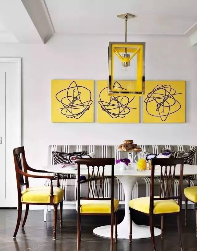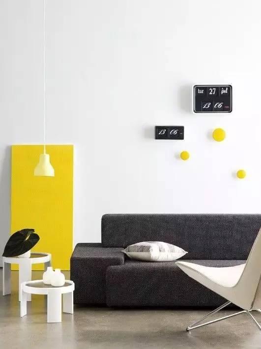 白色的墻體難免單一無味,若是添上那么一抹黃,則瞬間像是有了生氣,整個(gè)空間都增添了活力。