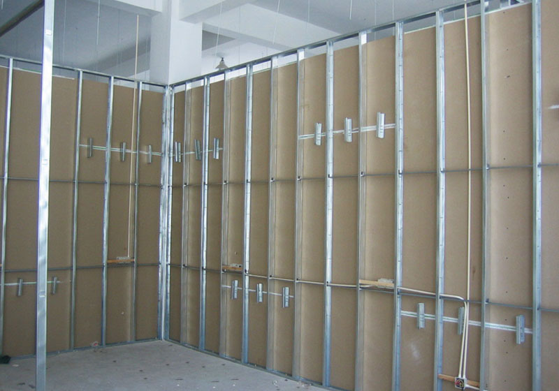 3、面板一般用石膏板,硅酸鈣板.隔聲方面采用填充材料:隔聲綿等;與龍骨連接用自攻螺絲固定