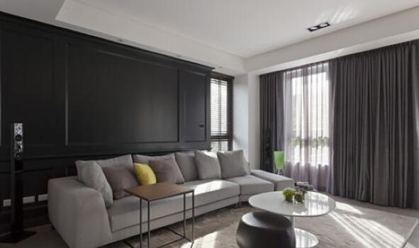 房內搭配海灣型沙發,微微的彎曲度,卻能帶來溫暖包覆的感受。簡潔的電視墻,預留給居住者擺放收藏的空間。