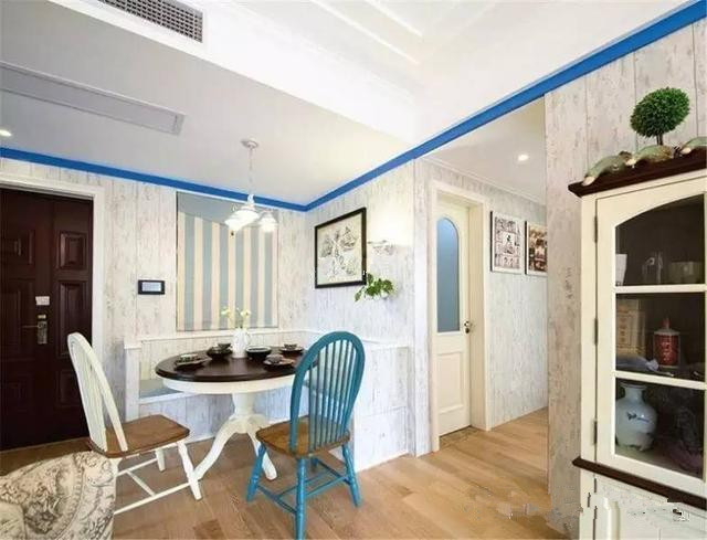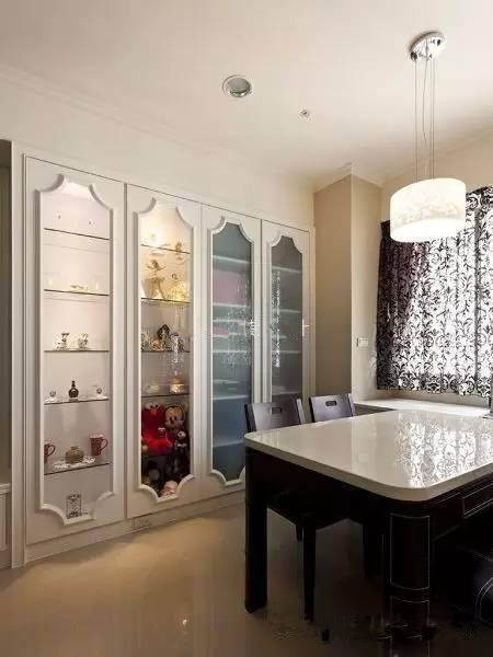 餐廳位置是在客廳往里,靠近窗戶的位置。小編個人不是很喜歡這種設計,但是由于戶型原因,這個地方光線最佳。