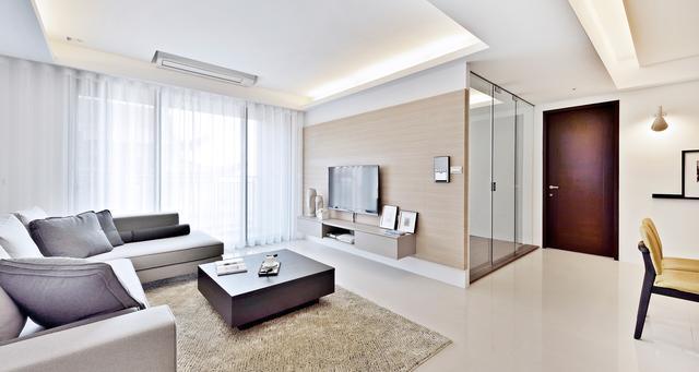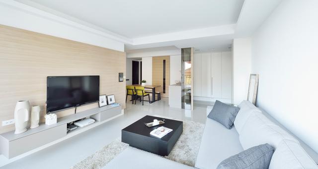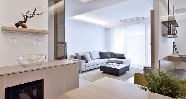 整個空間都是白墻,沙發背景墻連裝飾畫都沒有,主要靠高級灰的沙發還有茶幾來營造風格,一開始還怕太單調,但現在看來任何裝飾對這個簡潔的空間來說都是負擔。