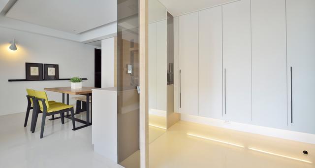 這個過道也值得一提,打了滿滿的純白色柜體,可以說是承擔了整個家的收納空間了,而且還在無形中裝飾了過道,這個想法大家可以借鑒。