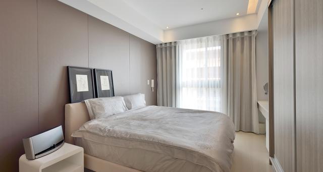 來到臥室部分,裝修依舊簡單、大方,雖然裝飾物寥寥無幾,是從配色方面就顯得非常精致高級了,個人超喜歡,很適合休息。