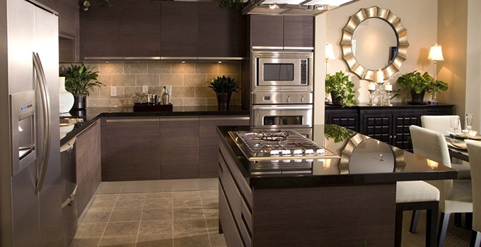 衣帽間設計得十分簡潔,旋轉掛鉤是個亮點,射燈營造出的光線氛圍十分溫馨。廚房為全黑色系,黑板墻的設計是個非常獨到的想法,涂鴉手繪隨心所欲,增添了烹飪之外的樂趣。