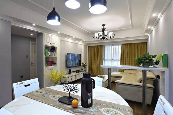 中間做個一個休閑小吧臺,也算是把兩個區(qū)域分隔開來了。