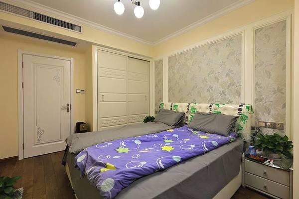 臥室最主要就是舒適度要高,所以墻面刷了暖黃色,看起來暖暖的心情很好,床頭背景墻用護(hù)墻板做了造型,花紋素雅浪漫,