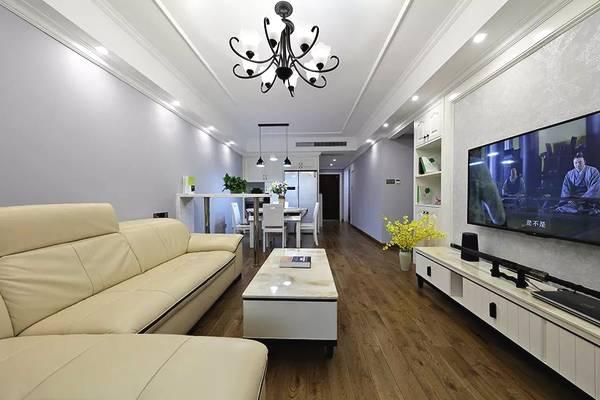 窗簾選擇了亮色顯得客廳溫馨明媚一點,搭配上木質(zhì)地板看起來效果好極了。