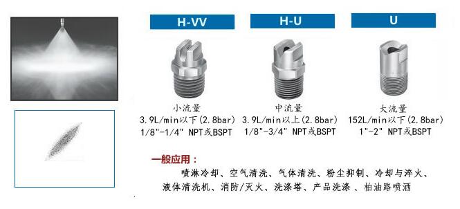 最大噴流角度為60-170度。在3Mpa壓強下,液體流率范圍為5.5一140升/分。螺旋噴嘴螺紋大小有1/4,3/8,1/2,3/4,1,1-1/2,2,3等多種規格,常規為英制管螺紋,若需其他規格的螺紋請與北京科豐噴霧設備有限公司聯系,可以提供相應尺寸的內螺紋或外螺紋接頭。扇形噴霧形式。