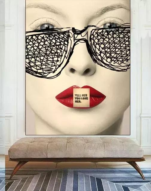 俏皮的波普風人像,相當復古的植絨面軟長凳,以及幾何紋毛面地毯,可以說是相當Chic的搭配了。