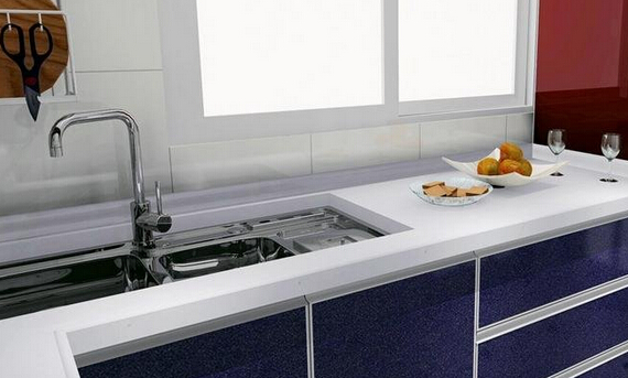4、石英石臺面要盡量的保持干燥,如果長時間的浸水,會導致臺面變形,如果用的是有色水,如醬油醋,沒有及時清洗,時間長了,污漬滲入到臺面里,很難擦掉。