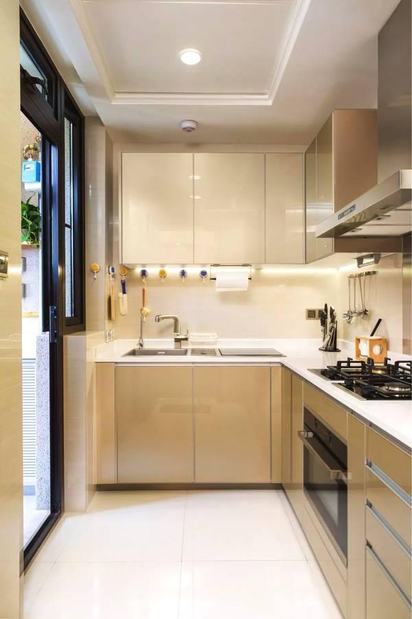 簡單實用,柜子下裝了燈帶,方便做飯的時候操作~
