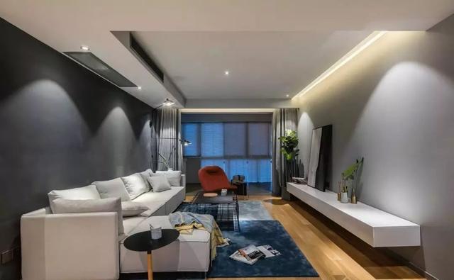 沙發(fā)背景墻采用的深灰色,沒有造型的設計,反而覺得簡潔干凈,與其對應的是電視背景墻,采用了高級灰的裝飾效果,同樣簡潔的裝飾,營造出大方的空間裝飾效果。