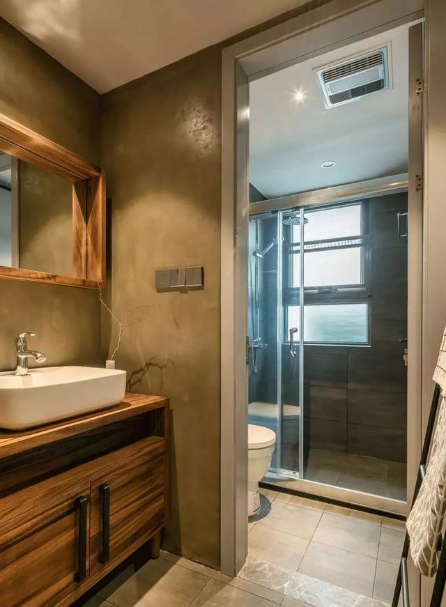 衛(wèi)生間跟大部分家裝一樣,做成了干濕分離,但是有一個亮點在其中,干區(qū)與濕區(qū)風格截然不同,一個現(xiàn)代感極強,一個復古精致。