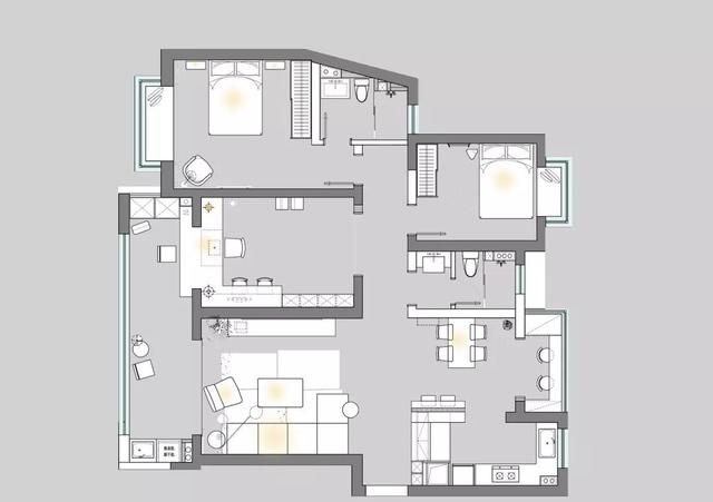 這個案例主要有三個亮點:1、空間上來看,開放式的廚餐廳設計,這會讓餐廳廚房都顯得更加寬敞舒適,適合大多數(shù)人家的戶型情況;2、從功能上來看,做到了不同空間之間該有的私密性與互通性,如案例中書房與陽臺之間設計;3、儲物功能是戶型設計中非常重要的一部分,如案例中書房的大書墻,陽臺的大型儲物柜,不影響視覺效果。