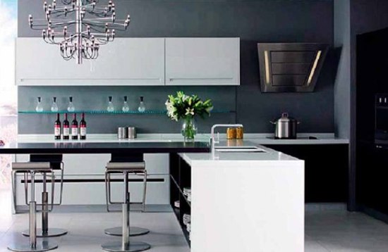 寬大的廚房不能不好好設(shè)計(jì),在具備了實(shí)用性的基本功能之外,設(shè)計(jì)感變得更為重要。交錯(cuò)式的設(shè)計(jì)將整個(gè)區(qū)域分隔成幾個(gè)部分,在使用中可以互不影響。黑白加金屬的主要元素讓空間內(nèi)酷勁十足。