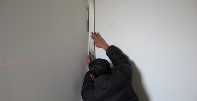 2、檢查屋頂和墻面的陰陽角線是否是水平線,如果不是,在今后裝修中要先用粉刷石膏找低再用耐水膩子找平即可。