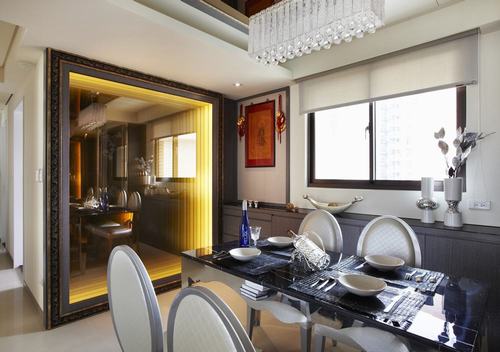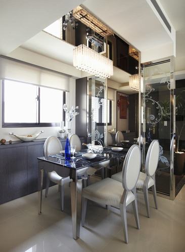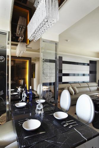 裝修TIPS:餐廳主墻面以反射玻璃展現特殊的鏡面效果,營造無限穿透延伸的意象。