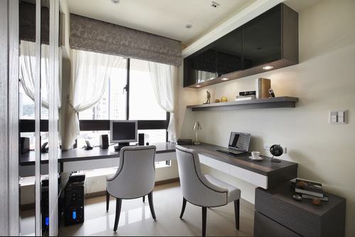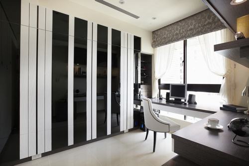 裝修TIPS:書房收納可以看出設計師采用利落線條呈現黑白對比的個性色彩。