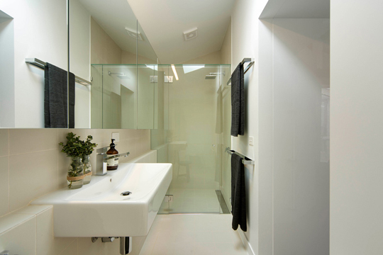 設計師沒有讓樓梯間荒廢,而是搭建一軟塌,在墻壁還安置幾個隔板,放置書本,就這樣一小型書房渾然而成,將空間利用率提高到極致。