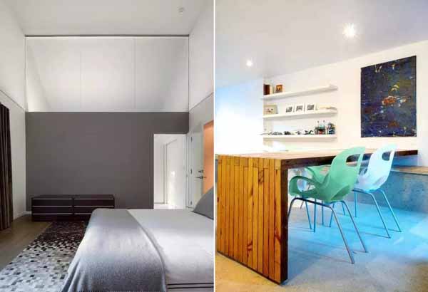 5)添加你自己的窗戶。這個地下健身房從兩個窗戶的興趣和窗格門接收到一些光線,空氣僅僅因為一個房間沒有窗戶,并不意味著它必須這樣下去。在門上方添加一些小氣窗,可以從相鄰房間借一些光線和空氣過來。下面的這間臥室通過創造龐大的高“窗”,從相鄰的窗外借來明媚陽光。