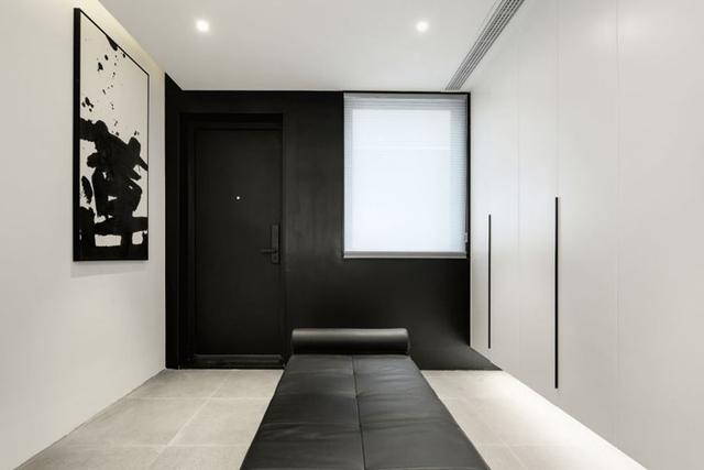 純黑的皮質換鞋凳則立于玄關中央,承載著下班回家后一天的疲憊。
