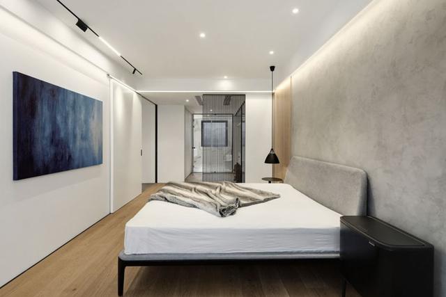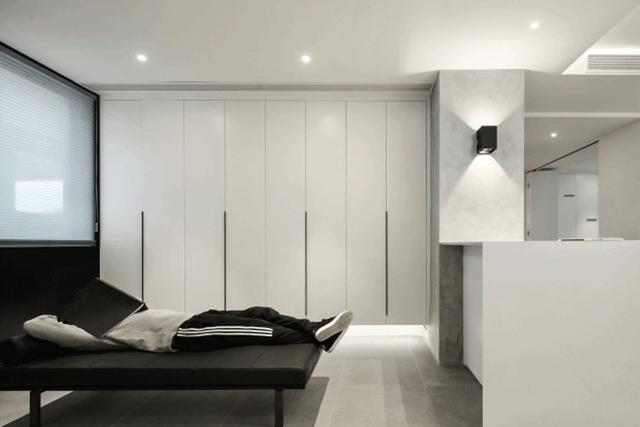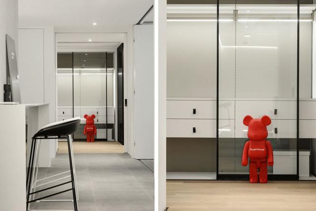 主臥被放在了走廊的盡頭,以白色的門扉打開了新的世界;紅色的Supreme聯名小熊,瞬間抓住了目光。