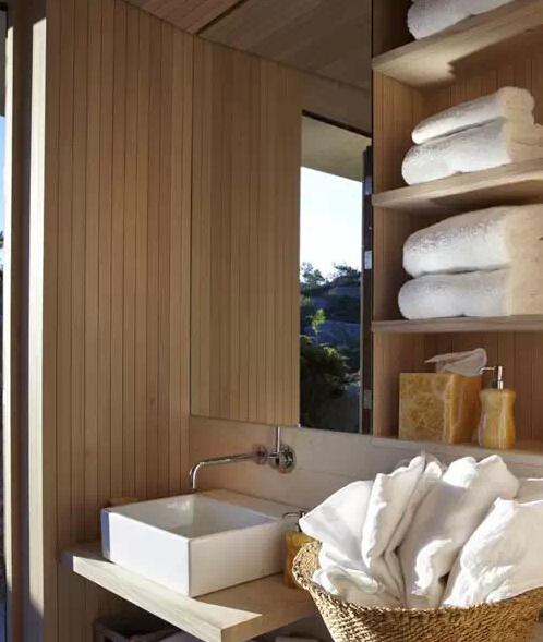 相對于臺上盆來說,很多有過實際實用經(jīng)驗的人都會表示推薦臺下盆,無論是從清潔的難易程度,還是從使用的舒適程度來說,臺下盆都是一個更好的選擇。而這個案例中的嵌入式臺下盆做到了個臺盆柜子門整齊劃一地融為一體,在不另外占用空間的情況下,用臺盆柜的空間解決了臺盆的安裝問題。