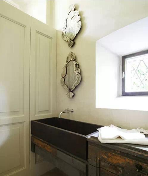 上一款臺盆是狹長形臺上盆,這一款臺盆則是狹長形的臺下盆,基本上都以狹長的外形去適應這片狹長的空間,因地制宜的說法在這類特俗的空間里就是一個經(jīng)典的制勝法寶。