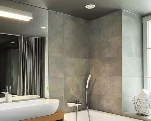 如果說上一款臺盆更適合工業(yè)風或者鄉(xiāng)村風的衛(wèi)浴裝修的話,這個嵌入精致,臺板優(yōu)雅的洗手臺則更適合簡裝修的室內(nèi)風格,淺色大理石瓷磚,白色水龍頭,銀色內(nèi)嵌臺盆,這些都偏于都市化的冷用色,還帶來一定的空間膨脹感。
