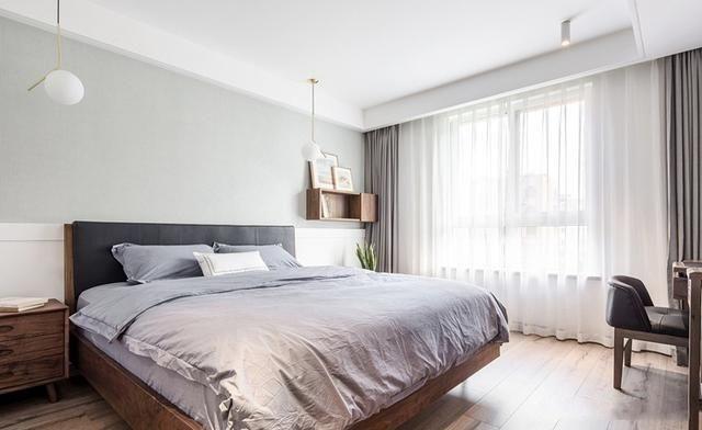 主臥的背景墻設(shè)計(jì)的很有格調(diào),上墻刷灰色墻漆,下墻是白色護(hù)墻板,既有個(gè)性又美觀。主臥裝了吊燈和射燈照明,滿(mǎn)足不同區(qū)域的光照需求。灰色調(diào)的床品,多了一些低調(diào)素雅。