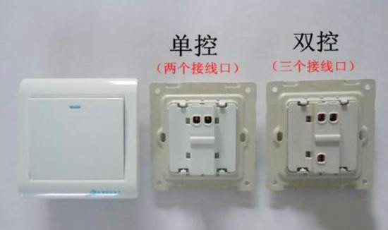 開關有雙控和單控的區別,雙控每個單元比單控多一個接線柱。一個燈在房里可以控制,在房外也可以控制稱作雙控,雙控開關可以當單控用,但單控開關不可以作雙控。