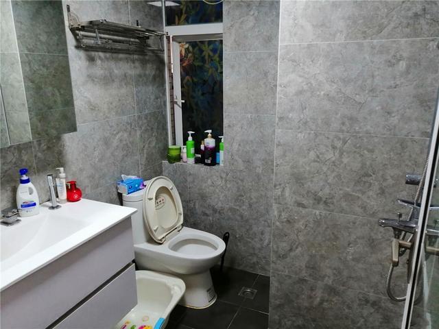 浴室選擇這種灰色的仿大理石瓷磚,看起來也很有檔次感。