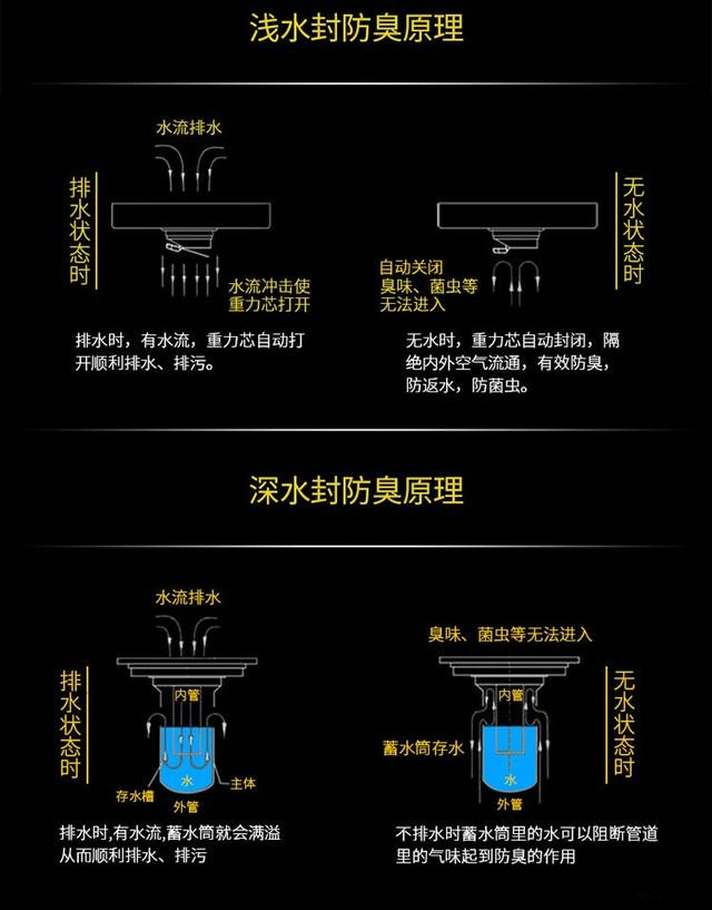 和普通地漏一樣,長條形地漏也分為深水封和淺水封,購買的時候也需要自己確定一下。