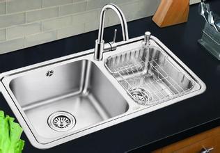 1、看材料。304鋼板制造的水槽是最好的,無論硬度與耐磨性都是最適合廚房使用。一般水槽的厚度為0.8mm-1.0mm,1mm的質量相對較好,過薄影響水槽的使用壽命和強度,過厚又缺乏必要的彈性容易損害瓷質餐具。好的不銹鋼水槽一般使用比較厚的鋼材,由于水槽都會進行邊緣處理,很難一下子看出厚度,最簡單的辦法是稍微用力按水槽表面,如果按得下去,就說明材料很薄。(附:廚房水槽尺寸常用標準)