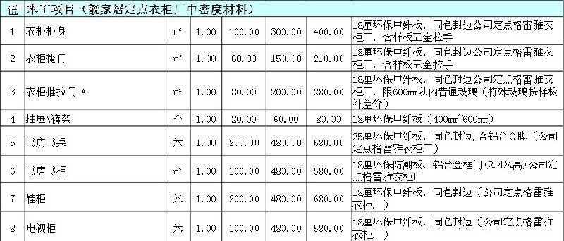 木工項目報價的時候一定要看清楚有沒有寫厚度,和高度,有的裝修公司就拿這個來忽悠業主。不看清楚的話后期是很被動的。