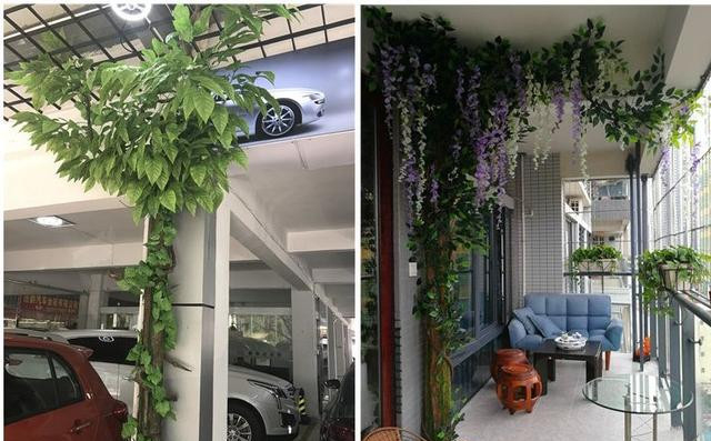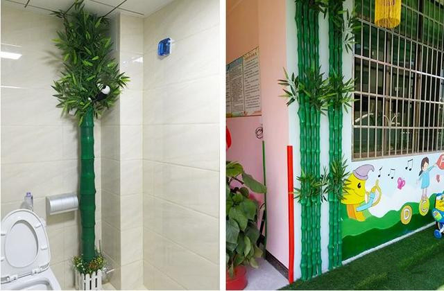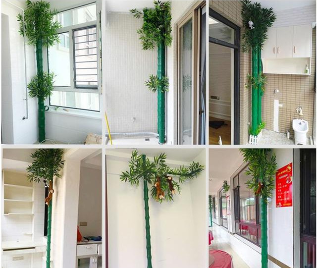 還有這種仿真竹子皮加竹葉也是可以的,簡(jiǎn)單裝飾,雖然是假的,但是比丑陋的管道要好看多了