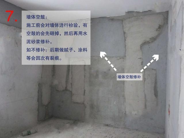 在施工前,一定要檢驗(yàn)墻體是否有空鼓等情況,如果有的話,必須要對(duì)空鼓部分的墻體砸掉,并用水泥漿對(duì)墻體進(jìn)行重填和修補(bǔ),以防止后期刷涂料或者做膩?zhàn)拥臅r(shí)候出現(xiàn)裂痕。很多業(yè)主在入住后,墻體出現(xiàn)裂痕,這時(shí)候有的裝修公司會(huì)告訴業(yè)主這是由于建筑下沉或者熱脹冷縮造成的,其實(shí)完全不是那么一回事兒!