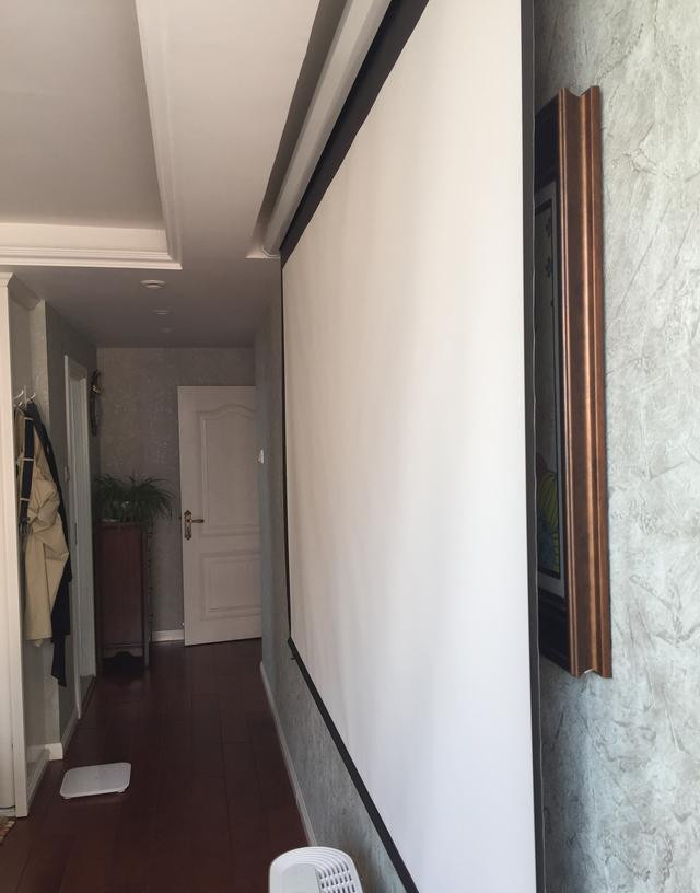▲ 這個案例的目的很簡單,就是用投影幕布取代電視的,所以干脆就按照了一個畫框投影幕布,也不用收起來,畫框幕布的投射的效果比普通的軟幕更好一些。