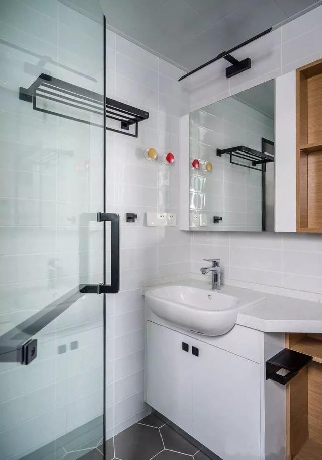 ▲通道區域側的墻面,空空的裝毛巾架很合適。