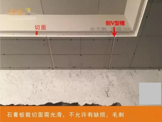 3.石膏板交接處采用v型槽的剔槽工藝。石膏板交接的位置剔出一個倒v型的縫子,然后再補嵌縫石膏,貼牛皮紙或掛網后刮膩子。為了讓接縫位置更加牢靠,嵌縫石膏里可以加901建筑膠水增加強度。
