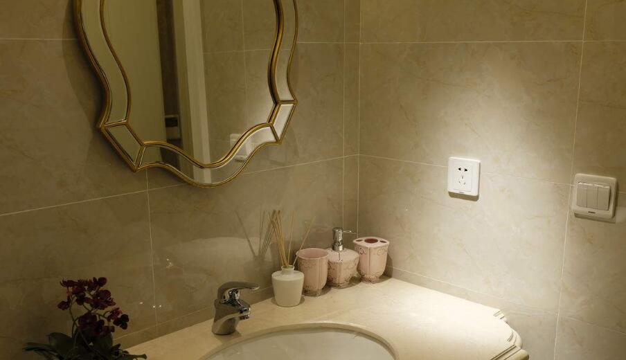 2、衛生間里的鏡子最好加框,如果不加框,則需要做密封防水處理。安裝時,注意不要破壞墻面,尤其是在瓷磚墻面上掛鏡子,盡量選擇在材料接縫處打孔。除了安裝普通鏡子外,建議在洗臉盆上方再安裝一塊可以拉伸的放大鏡。