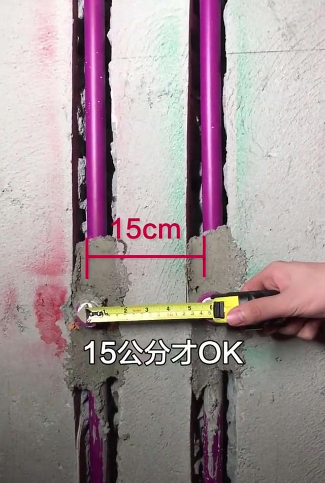 2、衛生間的熱水器的接口和水管接不上?都怪衛生間的冷熱水管間距不達標,驗收時用尺子量一下,間距15公分才OK。