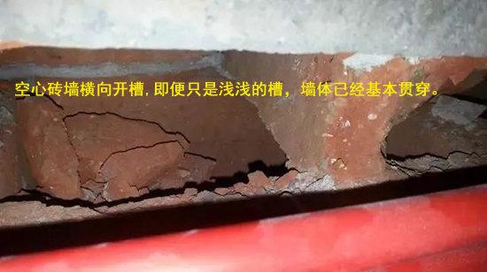 很多業主由于缺乏經驗,不清楚墻體上橫向開槽的危害,其實在墻上橫向開槽的隱患極大,具體如下: