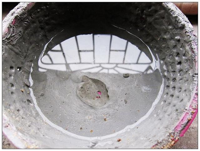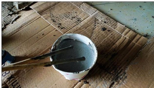 開始動手制作了,先把水泥放到杯子里,加入少量的水,攪勻······
