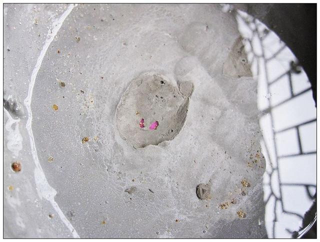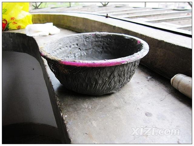 接著把防水跟水泥攪勻,呵呵~~原來攪勻后變成灰色了