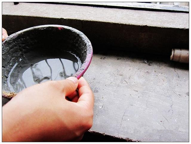 翻過來看看篩子的背面,用手按了下,沒什么彈性,或許水泥用多了!涂防水材料是要專業的基層處理,且1.配料,按HB乳液膠:水泥=1:(0.9~1.0)的重量比攪拌均勻。2.根據工程設計要求的厚度,可涂刷2~3遍。3.每涂一遍,要待涂層表干后(約1~2h),再涂下一遍~!