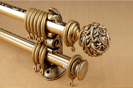 鐵金屬具有良好的延展性,這類窗簾桿的一個明顯特點就是花頭造型多樣。鐵藝窗簾桿搭配絲質或紗質窗簾,用于臥室,效果會很不錯。