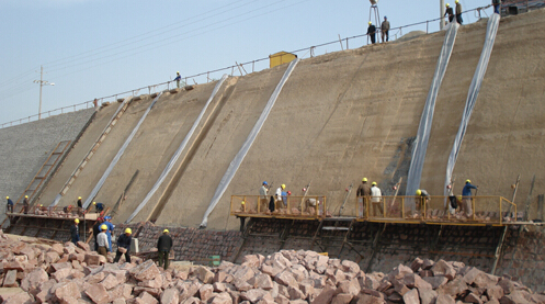它的施工利用平縫砌石的方式,在進行砌筑的過程中影使得塊石的寬面同坡面橫向保持平行,同時在進行施工前,應先進行試放,在有些地方加以修整,在砌石的拐角位置出現有空隙的現象,我們可以使用小片石將其塞緊。